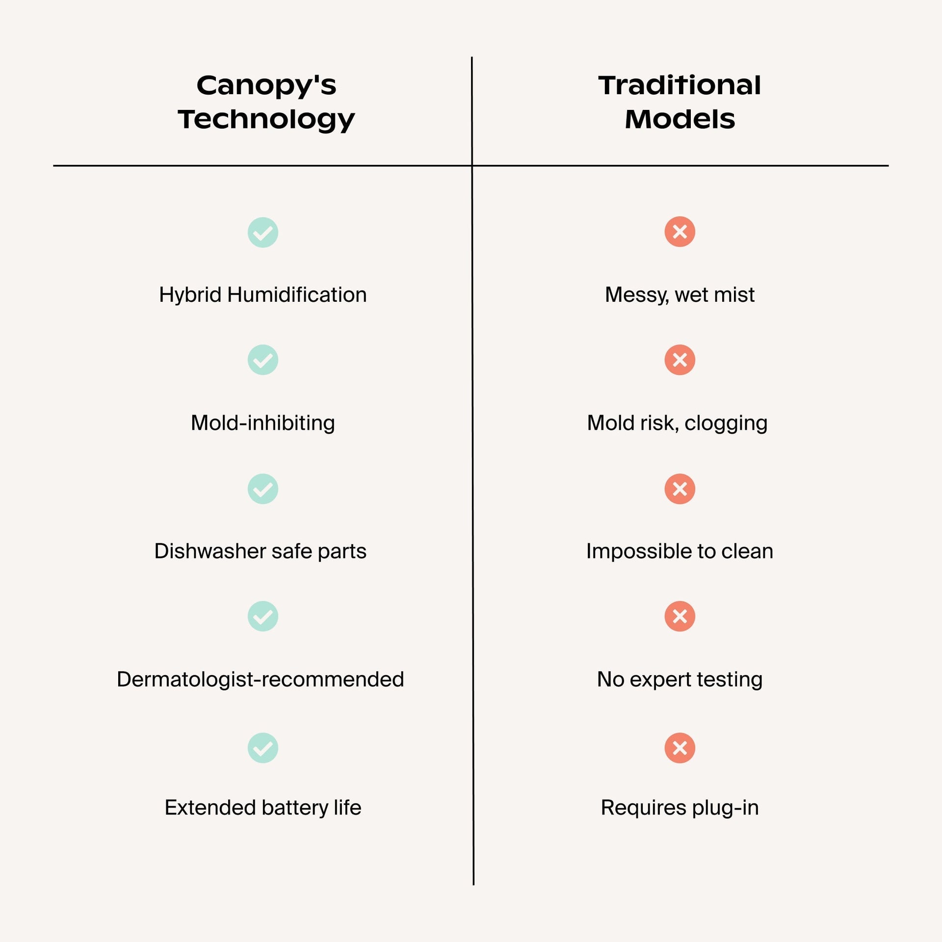 A reimagined Portable Humidifier that uses first-of-its kind Hybrid Humidification to deliver moisture on the go. Designed for easy cleaning and portability, meet your new travel companion for everyday wellness.