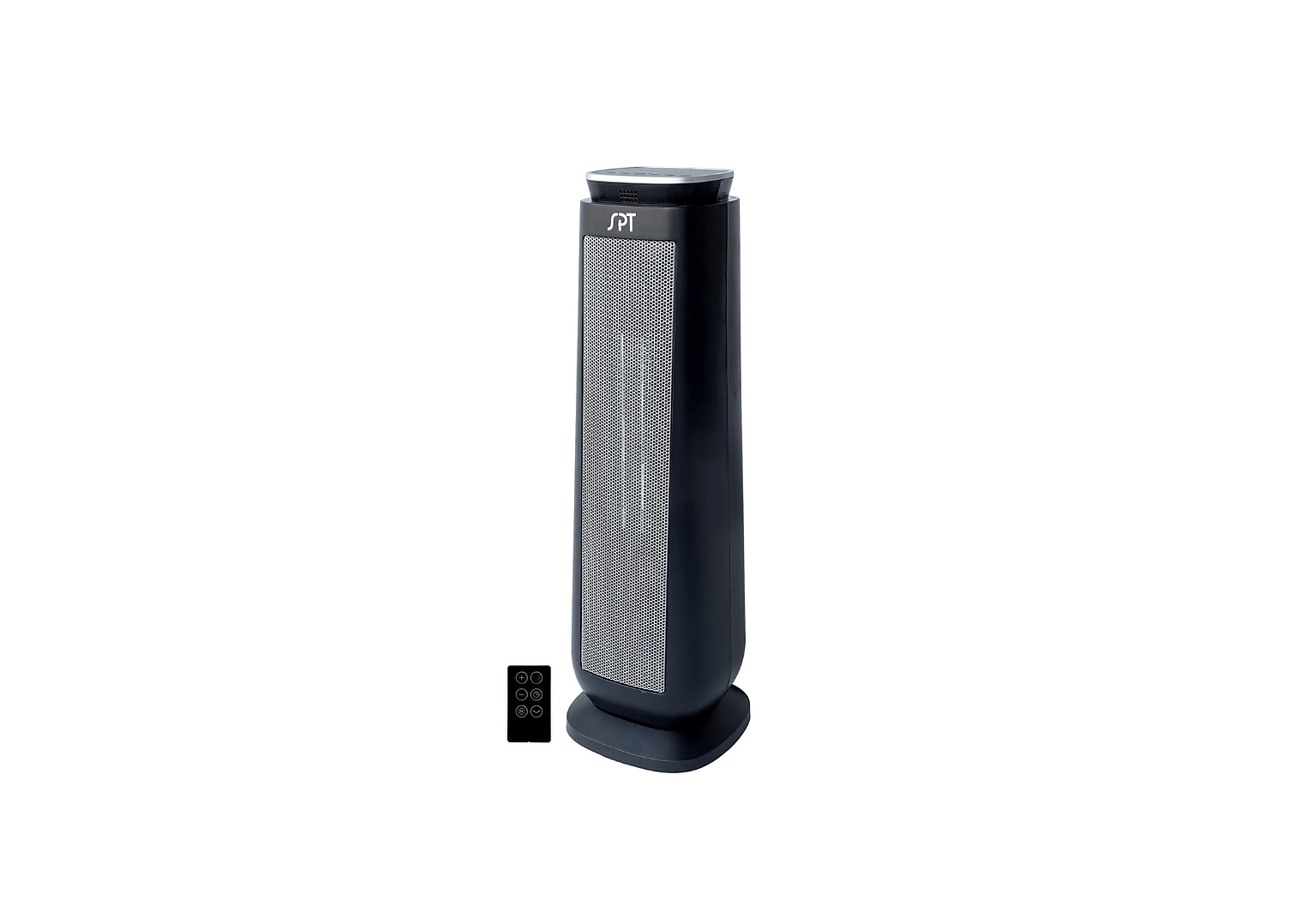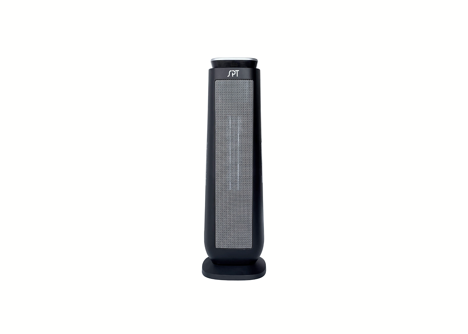SPT Tower Ceramic Heater will be a great addition to any modern living space! The ceramic heater provides soothing warmth along with the safety of a low-temperature surface. This unit offers the oscillation function to efficiently deliver heat to the intended space. Temperature adjustments can be made on the heater’s main control panel or from the comfort of your seat by using the remote control. The timer function allows the desired run time to be pre-set along with the temperature auto shut-off protection (temperature above 122˚F) for a safe worry-free user experience. The Auto energy-saving function allows the heater to determine the most energy-efficient mode of achieving the desired temperature.
