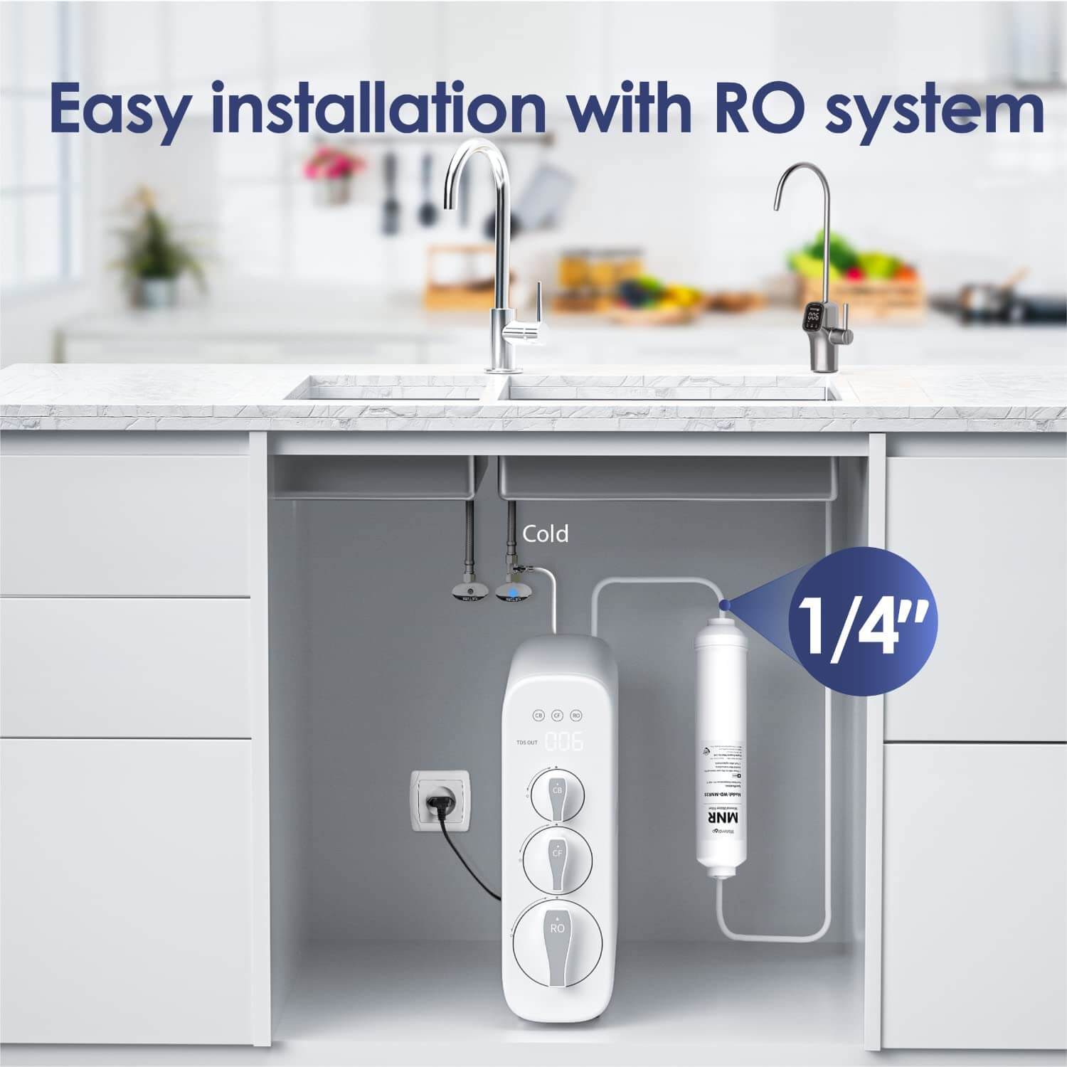 - Compatible with RO water system, under sink filtration sys