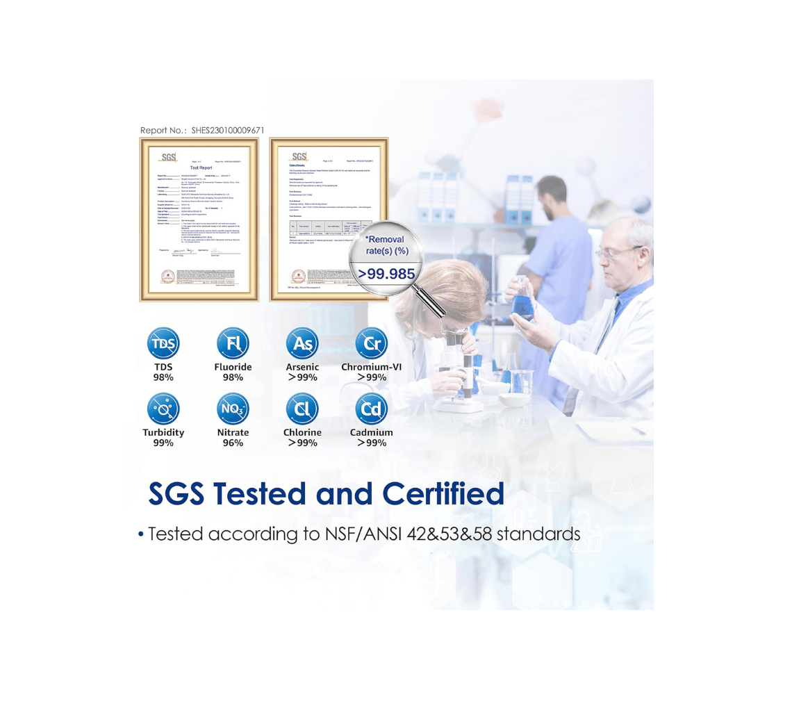This Waterdrop RO system is tested and certified by NSF International against NSF/ANSI standards 58 & 372. Products with NSF certification are considered to have better quality.