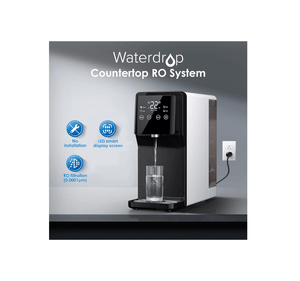 The Waterdrop countertop reverse osmosis system leaves impurities with no chance. The two filter cartridges are powered by a combination of reverse osmosis membrane, carbon block, and PP cotton. In the entire filtration process, the system reduces most of the harmful substances like chloramine in your tap water, reduces TDS (Total Dissolved Solids), and significantly improves water taste.